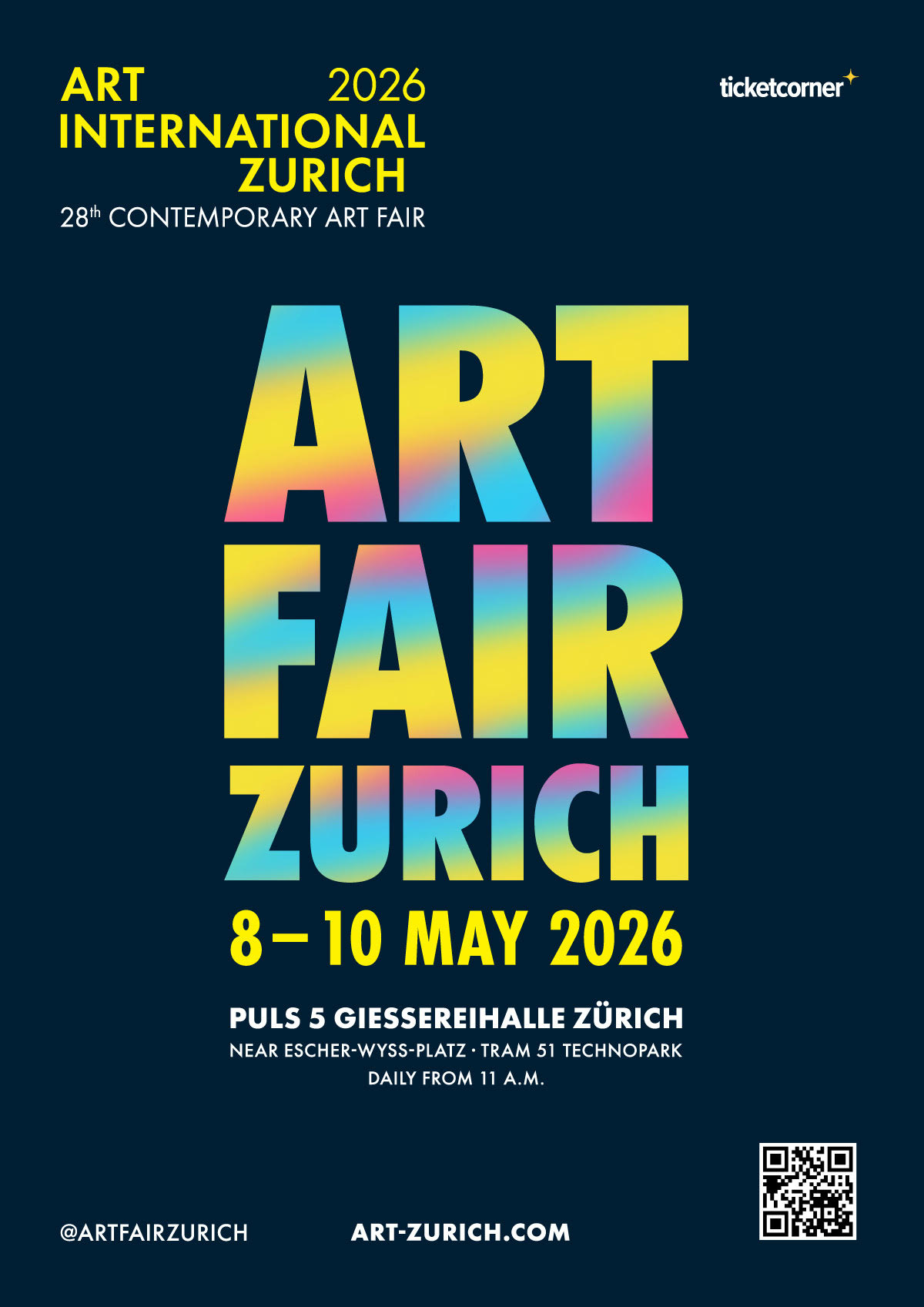 La 28ª edizione della fiera d’arte ART INTERNATIONAL ZURICH si terrà dall’8 al 10 maggio 2026 presso la sala dell’ex fonderia Puls 5 a Zurigo. La fiera presenta arte contemporanea da tutto il mondo, promuovendo connessioni stimolanti tra artisti, gallerie e appassionati d’arte.